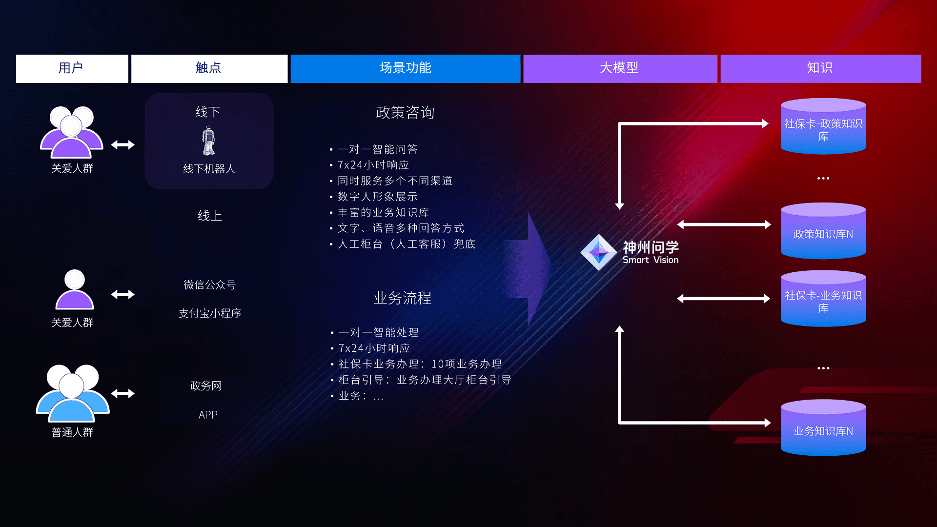 • 线上线下全覆盖:线上提供微信公众号、、支付宝小程序、、政务网、、、app多种渠道,,,,与线下机器人形成完整服务体系。。。。